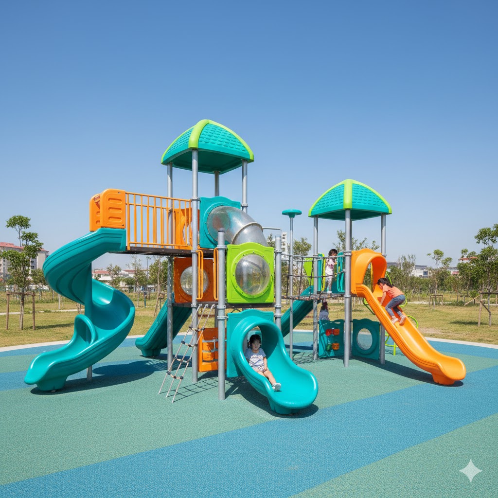 Structures combine slides, tunnels, and climbers into one system. Engineered for learning and long-term durability standards.
